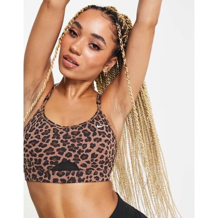 Nike Training Dri FIT Indy Glitter Leopard Pack bra in brown ASOS
