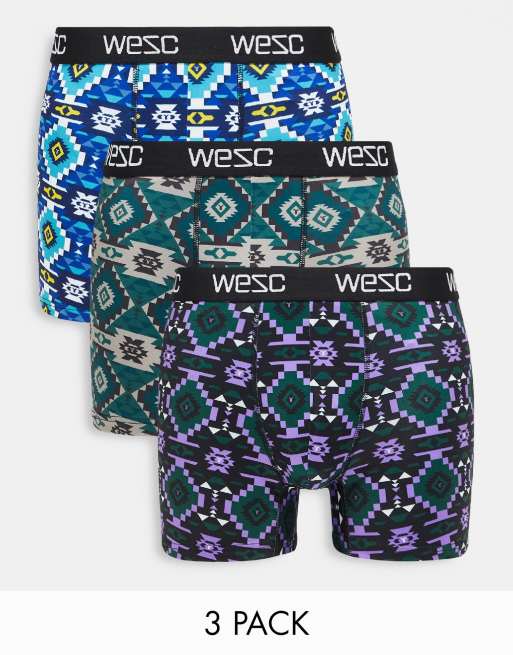 WESC 3 pack trunks in purple and blue aztec print ASOS
