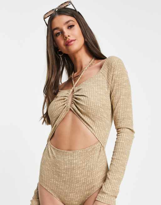 Topshop Tall cut out spacedye bodysuit in stone ASOS