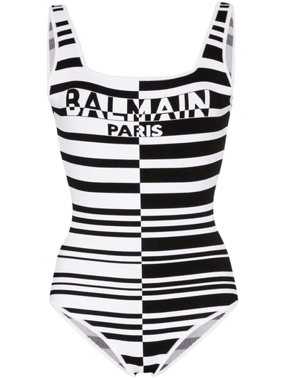 Balmain Striped Jacquard Logo Bodysuit In White ModeSens