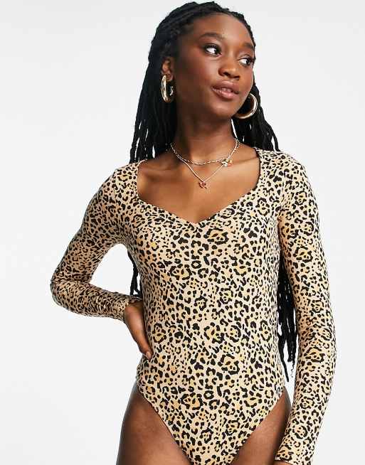 Miss Selfridge Long Sleeve Sweetheart Neck Bodysuit