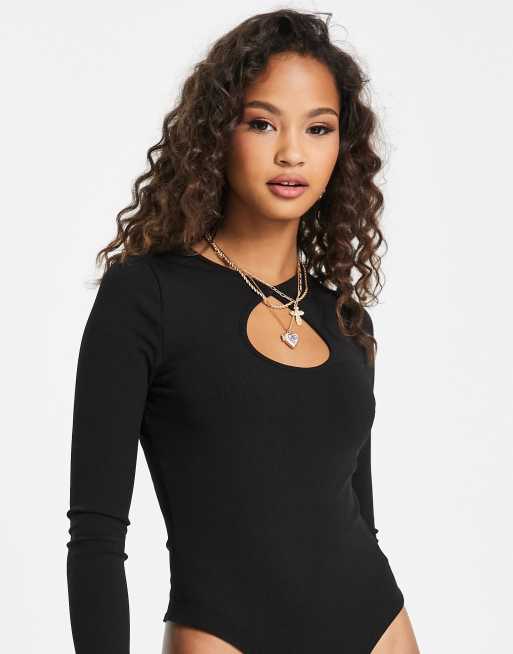 ASOS DESIGN high neck bodysuit with keyhole cut out and thumb holes