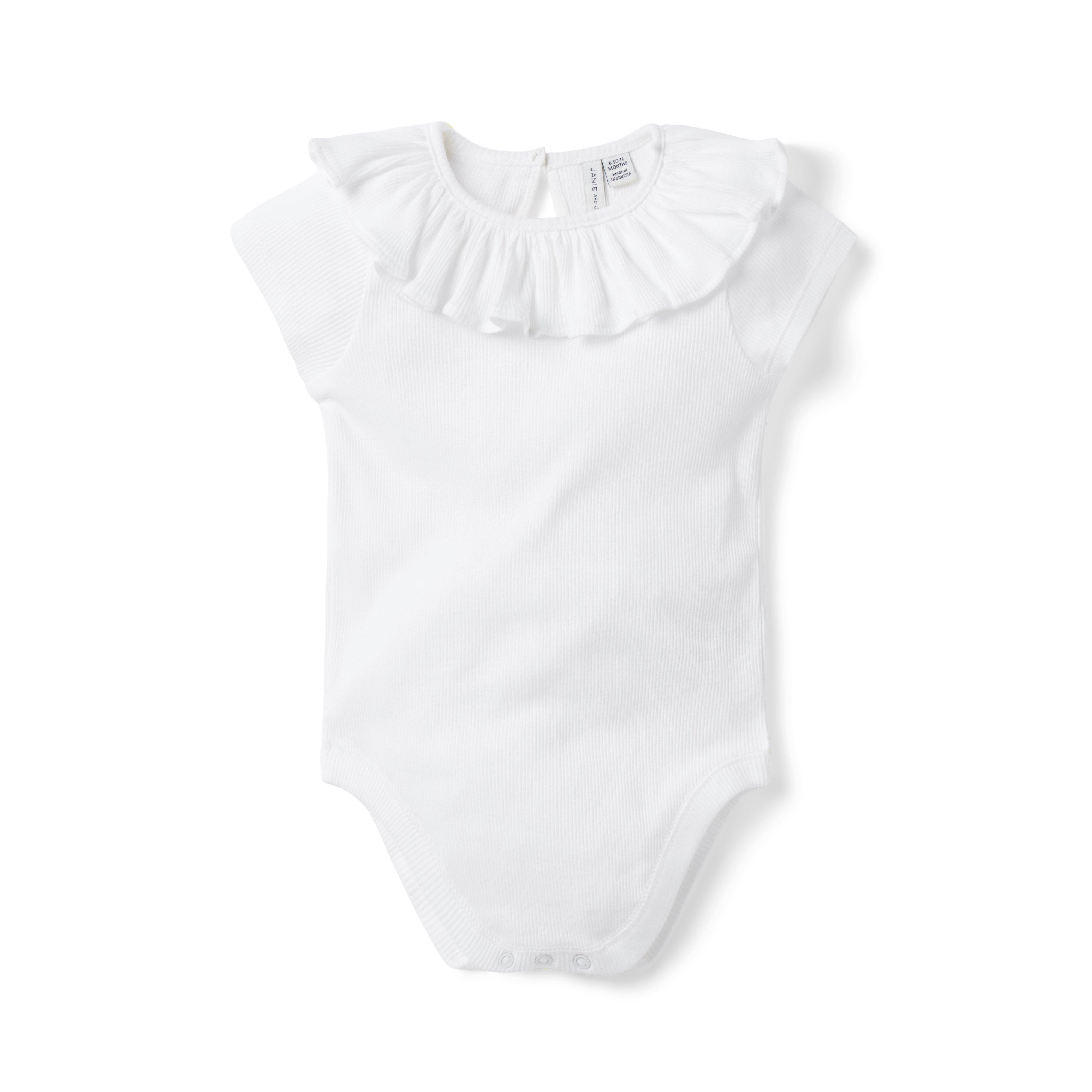 Newborn White Baby Ruffle Collar Bodysuit by Janie and Jack
