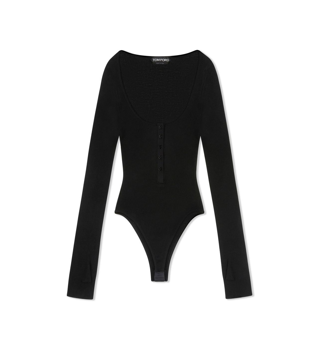 Cashmere bodysuit clearance, EXTRA FINE CASHMERE SILK RIB LONG SLEEVE BODYSUIT clearance