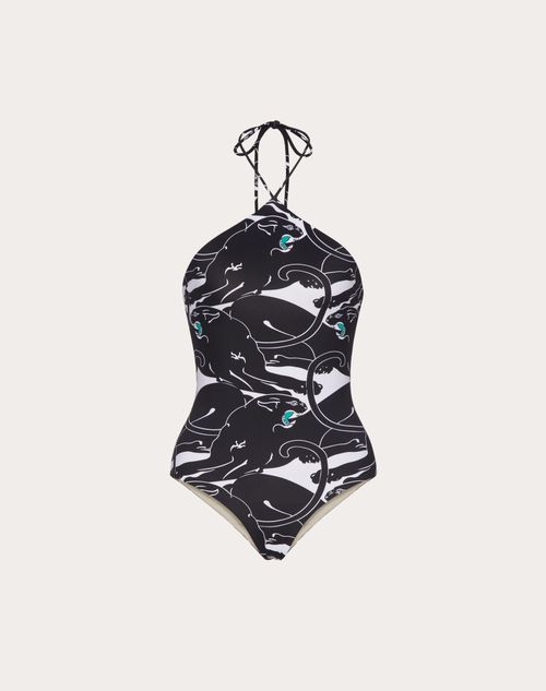 Panther Lycra Swimsuit for Woman in Black white green Valentino SI
