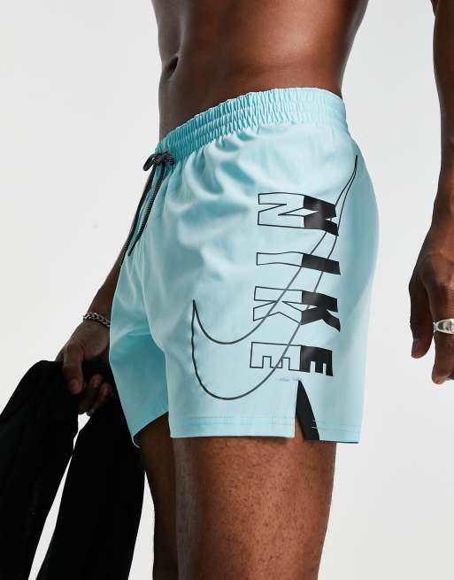 Nike Swimming Explore 5 inch large side logo swim shorts in light blue