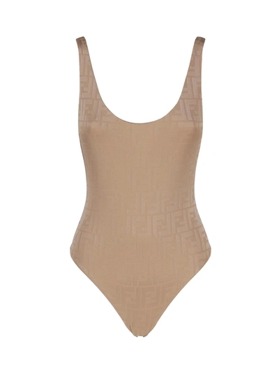 Fendi Ff Motif Stretched Swimsuit In Beige ModeSens