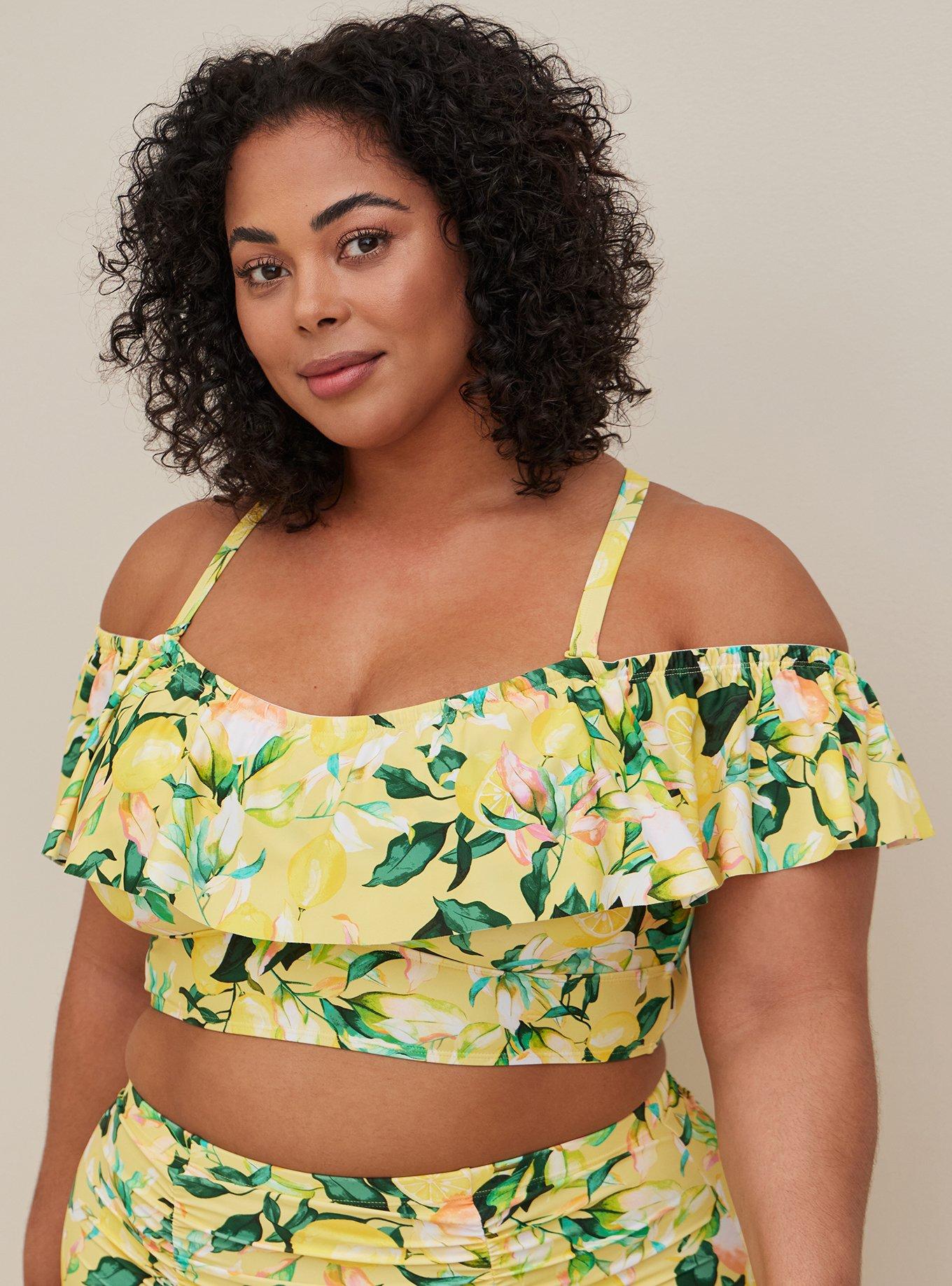 Torrid clearance lemon swimsuit, Plus Size Off Shoulder Ruffle Swim Top Lemon Torrid clearance
