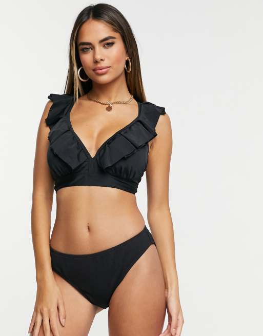 Pour moi bikinis clearance sale, Pour Moi Fuller Bust Space frill bikini top in black clearance