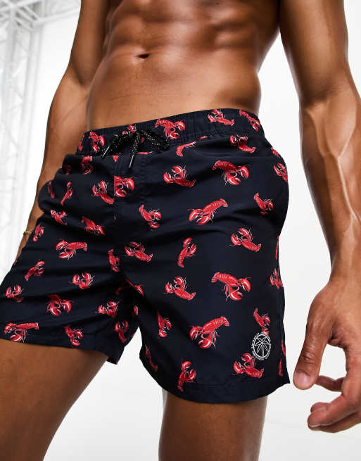 Jack Jones Intelligence swim shorts in navy lobsterprint