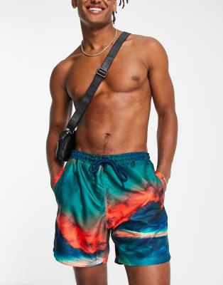 River Island Scenic Print Swim Shorts In Blue multi ModeSens