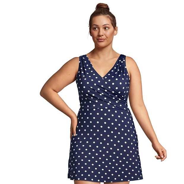Lands end swim clearance plus, Plus Size Lands End Print Tummy Control Surplice One Piece Swim Dress clearance