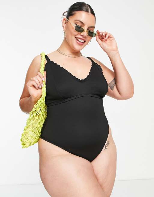 Peek Beau Curve Exclusive scallop cut out swimsuit in black ASOS