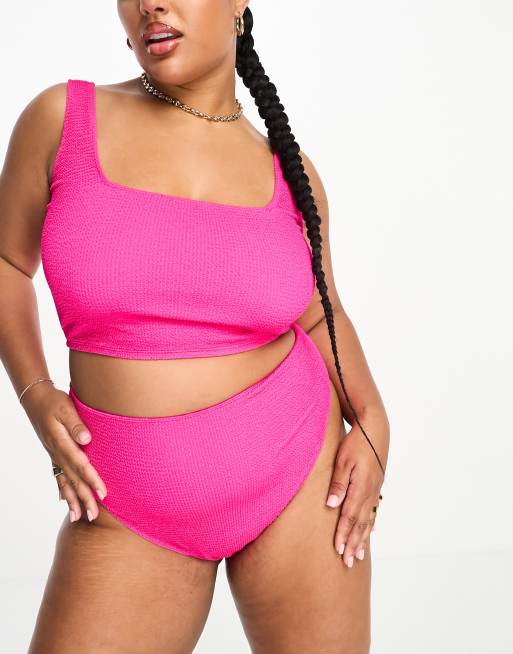 Plus size bikini clearance asos, ASOS DESIGN Curve mix and match crinkle crop longline bikini in clearance