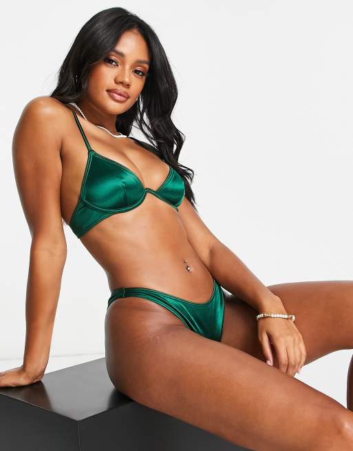 South Beach mix match exaggerated wire bikini top in high shine emerald green
