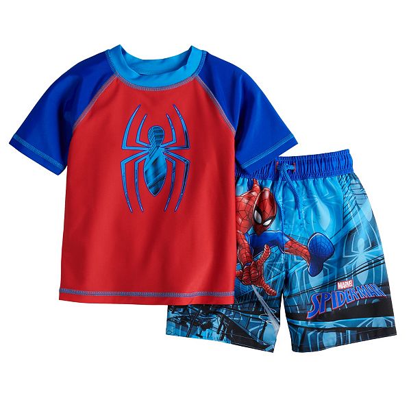 Boys clearance spiderman swimwear, Toddler Boy Marvel Spider Man Rash Guard Top Swim Trunks Set clearance