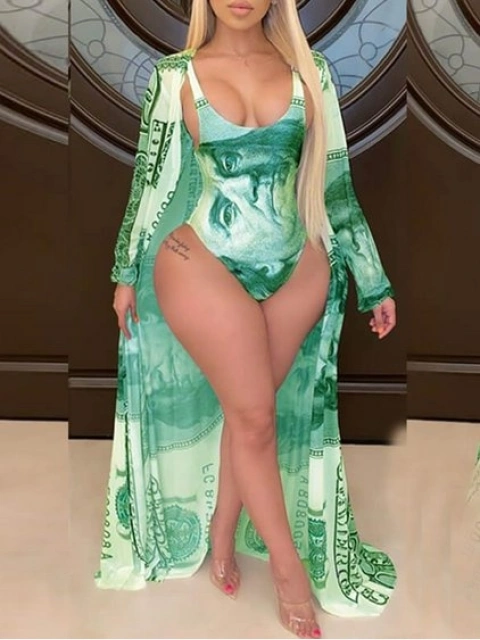 LW Plus Size Money Letter Print One piece Swimsuit With Cover up