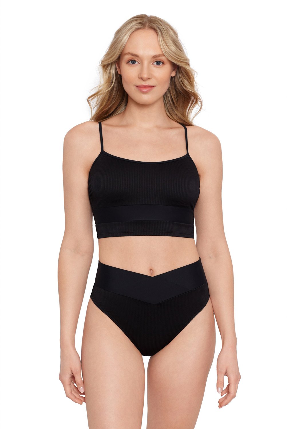 BUTTON FRONT MIDKINI SWIM TOP IN BLACK BY PINK DESERT