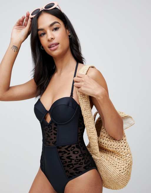 Lost Ink Plus Size Corset Style Swimsuit in Black Lyst