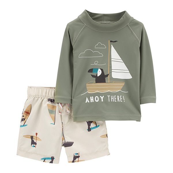 Carter s Child of Mine Baby and Toddler Boy Rashguard and Swim Trunks Set 2 Piece Sizes 0 3M 5T