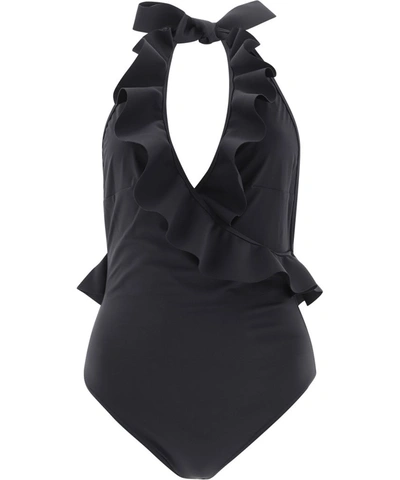 Zimmermann Cassia Frill Wrap One piece Swimsuit In Black ModeSens