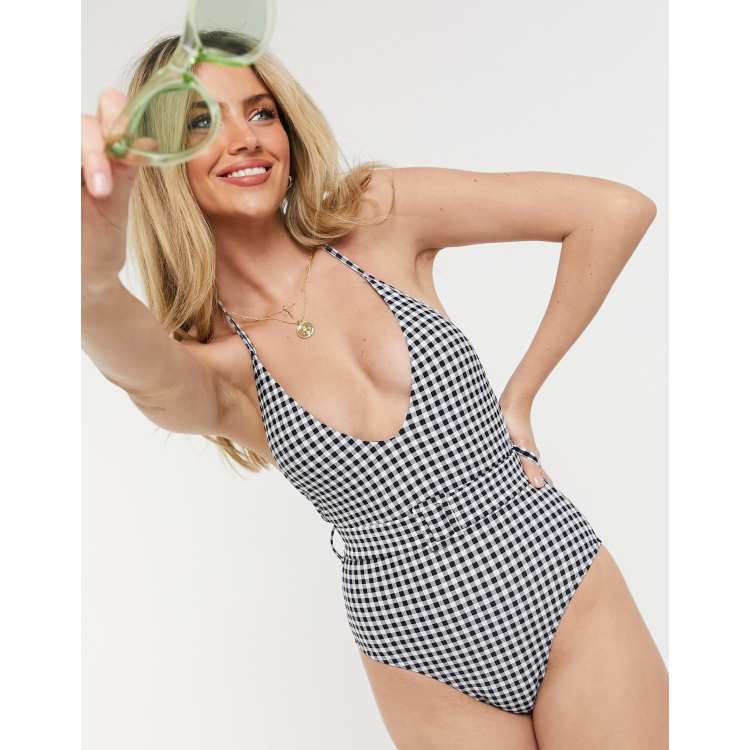 New look white clearance swimming costume, New Look belted swimsuit in gingham ASOS clearance