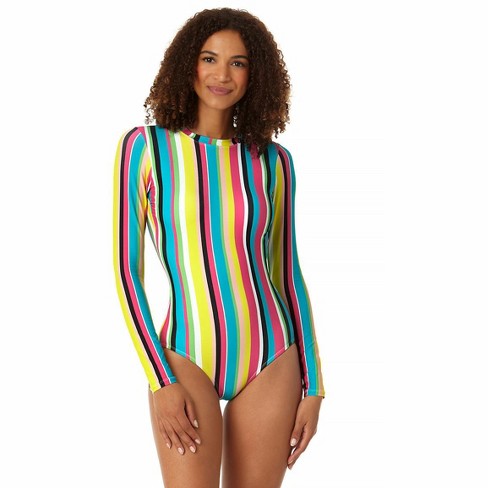 Anne Cole Women s Lawnchair Stripe Long Sleeve Open Back One