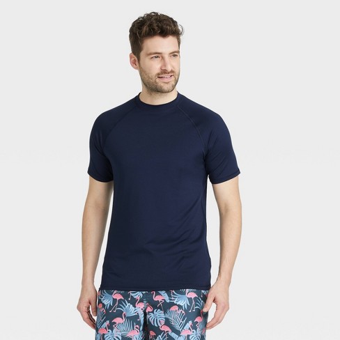 Target mens swim clearance shorts, Men s Big Tall Slim Fit Short Sleeve Rash Guard Swim Shirt Goodfellow Co Navy Blue XLT clearance