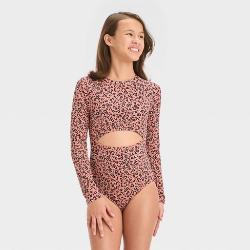 Girls Leopard Spots One Piece Rash Guard art class XS