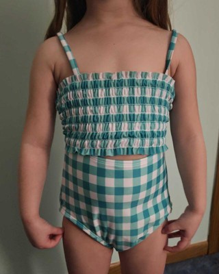 Girls Summer Jubilee Gingham Checkered One Piece Swimsuit Cat Jack Green XS