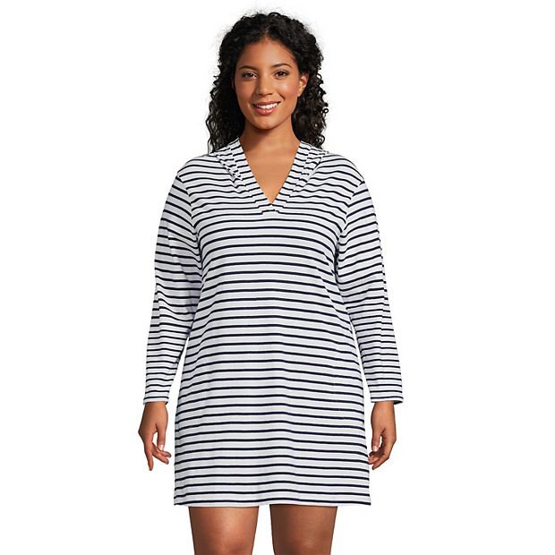 Plus Size Lands End Cotton Jersey Hooded Swim Cover Up Dress