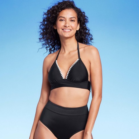 Women s Crochet Trim Halter Bikini Top Kona Sol Black S