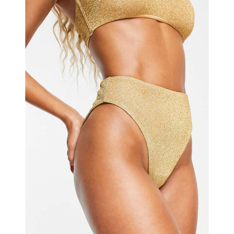 ASOS DESIGN mix and match high leg high waist bikini bottom in gold glitter