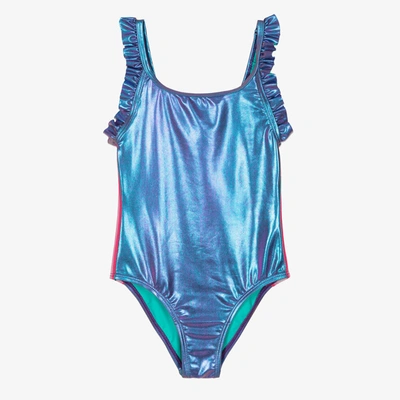 Girls clearance metallic swimsuit, Billieblush Kids Girls Blue Metallic Logo Tape Swimsuit ModeSens clearance