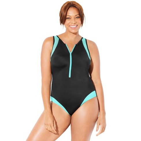 Swimsuits for All Women s Plus Size Zip Front High Neck Chlorine Resistant One Piece Swimsuit 12 Black Miami Vice