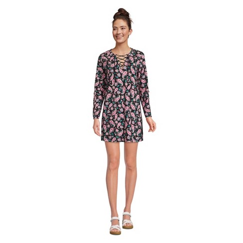 Lands End Women s Cotton Jersey V neck Tunic Swim Cover up Shirtdress Large Black Multi Paisley Floral