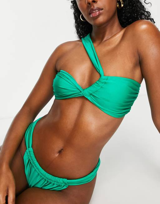 ASOS DESIGN twist one shoulder bikini top in emerald green