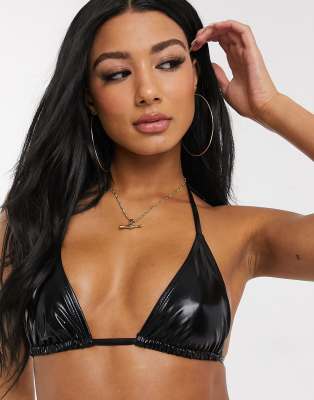 Public Desire vinyl triangle bikini top in black