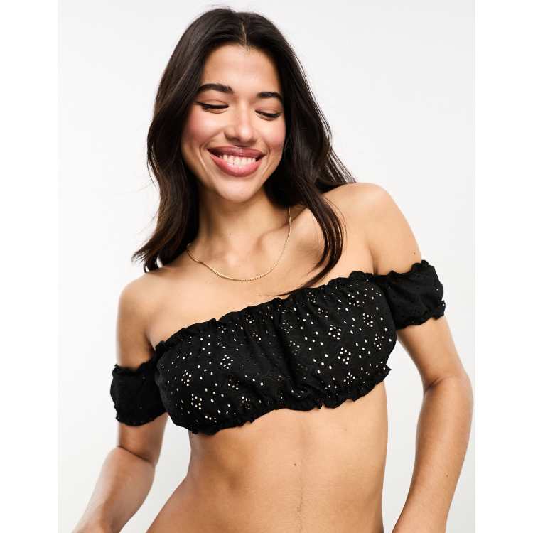 Black Bardot Bikini Top With Capped Sleeves ShopperBoard