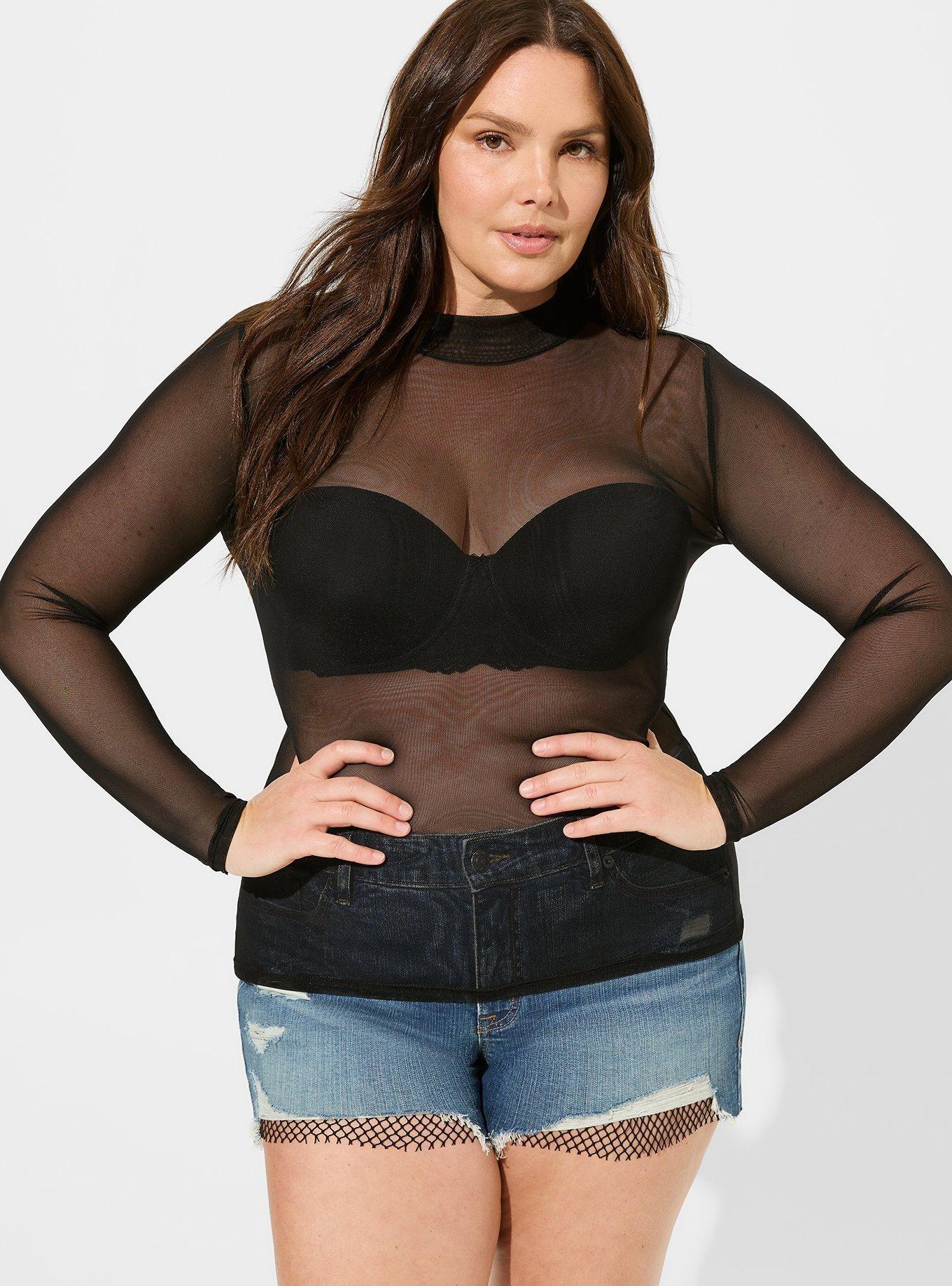 Torrid swim mesh dot off clearance the shoulder, Plus Size Mesh Mock Neck Long Sleeve Top Torrid clearance
