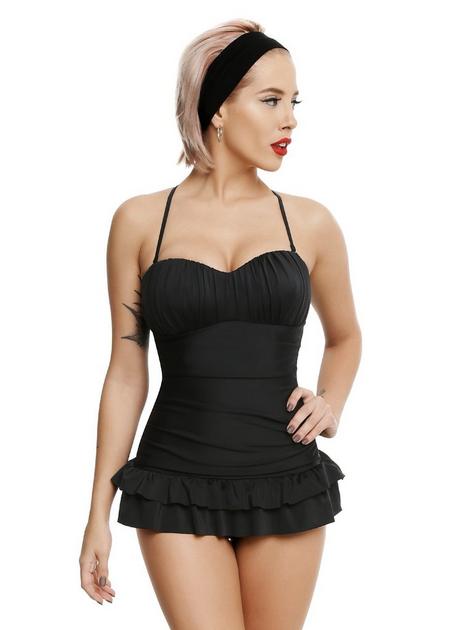 Black One Piece Ruffle Skirt Swimsuit Hot Topic