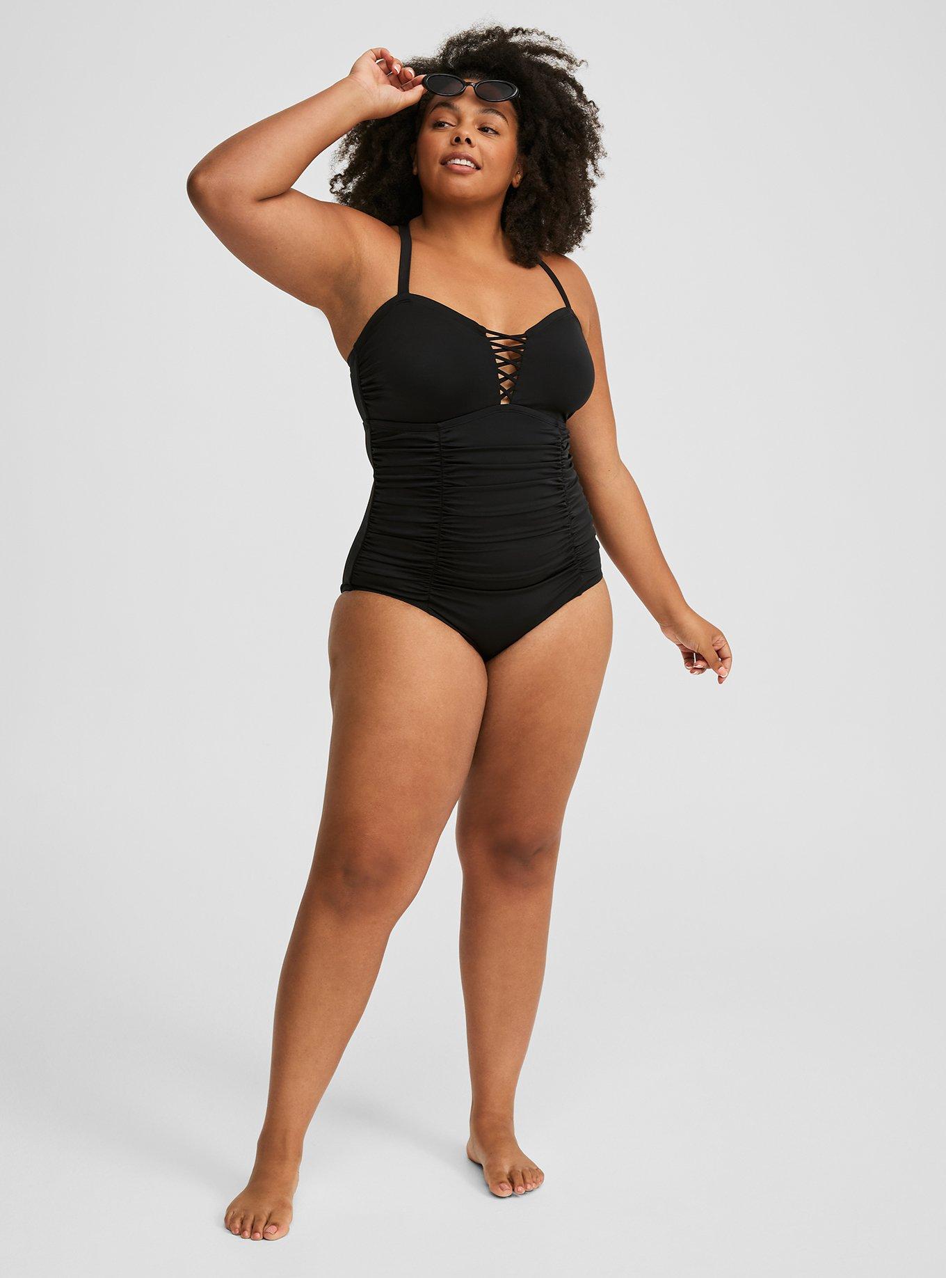 Plus Size Slim Fix Wireless Lattice Front One Piece Swimsuit Torrid