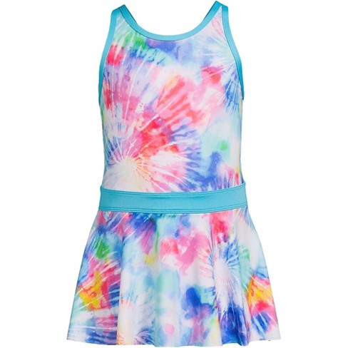 Lands End Kids Slim One Piece Swim Dress Swimsuit 8 Rainbow