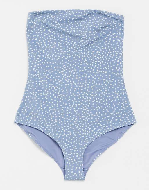 Other Stories square neck polka dot swimsuit in blue ASOS