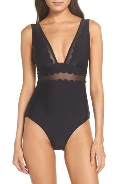 Ted Baker London 36DD E Galinda Scallop Mesh Detail Swimsuit Black 156