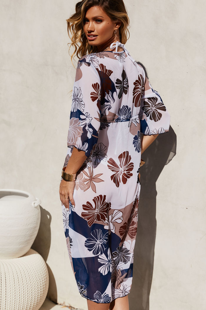 Tie waist beach clearance cover up, Navy Floral Beach Cover Up w Drawstring Waist clearance
