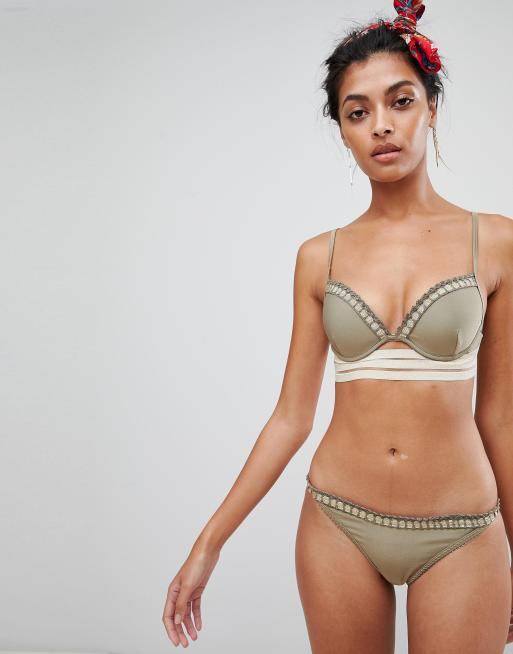 River island saddle clearance stitch bikini, River Island plunge bikini top with gold trim in khaki clearance
