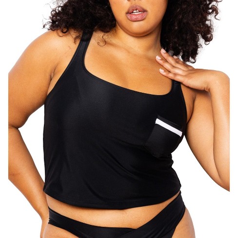 Women s Colette Tankini Top with Pocket MIGA Swimwear S Black White