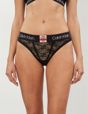 Calvin Klein Logo print Mesh Lace Thong In 001 Black ModeSens