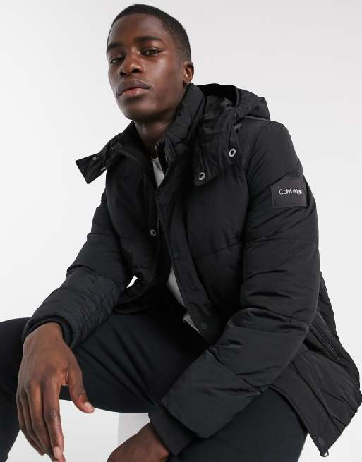 Calvin Klein crinkle nylon mid length jacket in black ASOS